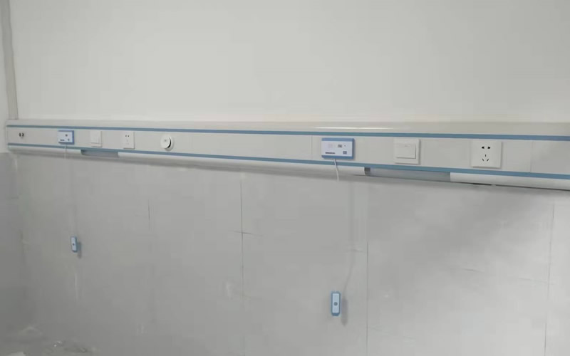 病房床頭吸氧裝置選用優(yōu)質(zhì)鋁合金設(shè)備帶上安裝氧氣終端、呼叫器分機(jī)、電源開(kāi)關(guān)插座、床頭燈。