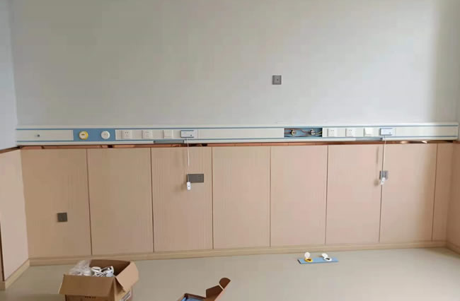 醫(yī)院病房床頭醫(yī)用氣體管道預(yù)埋開槽深度30mm左右,寬度60mm左右即可,兩根管道分別套兩根20mm的PVC管即可。預(yù)留高度一般為醫(yī)療設(shè)備帶中間位置,距離地面1350-1450mm的高度。注意電源線和呼叫線、以及網(wǎng)絡(luò)信號線等需要安裝到設(shè)備帶上的設(shè)備線路,也要預(yù)留到這個高度。每間病房同面墻體有兩張以上床位的時候,管線只需要預(yù)留一個點位的即可,其余延長部分可在設(shè)備帶內(nèi)變接。