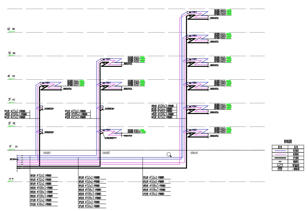 上圖圖為醫(yī)院項目,三棟病房樓需用氣,氣體管道均采用不銹鋼管,按國家標(biāo)準(zhǔn)GB 50751-2012年《醫(yī)療氣體工程技術(shù)規(guī)范》的要求,醫(yī)院各病房的分布,以及醫(yī)院每天對氣體的需求,從各中心站連接到各用氣點。管道應(yīng)滿足GB/T14976-2012《流體輸送不銹鋼無縫鋼管》的要求。各種規(guī)格的閥門、三通和接頭均采用優(yōu)質(zhì)不銹鋼,閥門內(nèi)與氧氣接觸的部分嚴(yán)禁使用含油或可燃材料。進(jìn)入病房前,管道用支架和箍固定在適當(dāng)?shù)奈恢?。每張床供氧的管道通過每個病房的角落,并用鋁合金裝置覆蓋到床頭,以確保病房的美觀。同時,穿墻、穿地板的管道應(yīng)加套管,但管道焊縫不得放置在套管內(nèi)。穿墻管的長度不應(yīng)小于墻厚和地板厚度,套管兩端應(yīng)用石棉密封。管道應(yīng)可靠接地。每個子系統(tǒng)(病房或獨立單元)應(yīng)安裝一個維修閥,以便于維護(hù)。