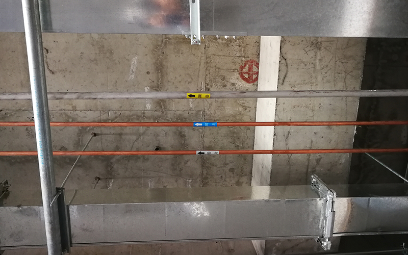 5、管道穿過墻壁和地板時(shí),需要增加套管。套管兩端用石綿密封。穿墻套管兩側(cè)與墻面相平。穿墻套管的高度一般為40cm,每個(gè)套管都埋在土建施工中;