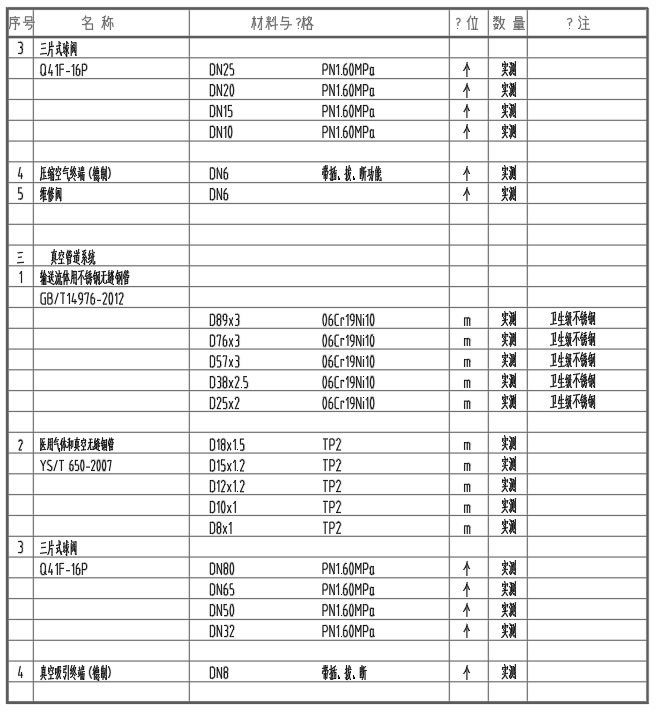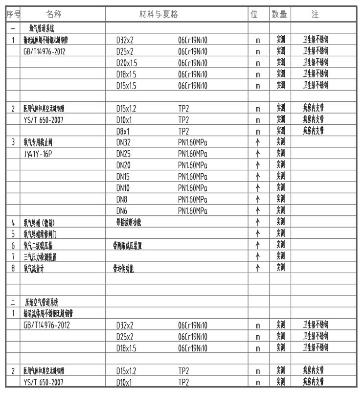 三、醫(yī)用氣體工程設(shè)備材料與規(guī)格
