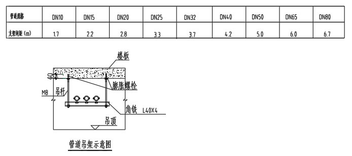 27.4.4 管道支架間距一般不大于下表規(guī)定: