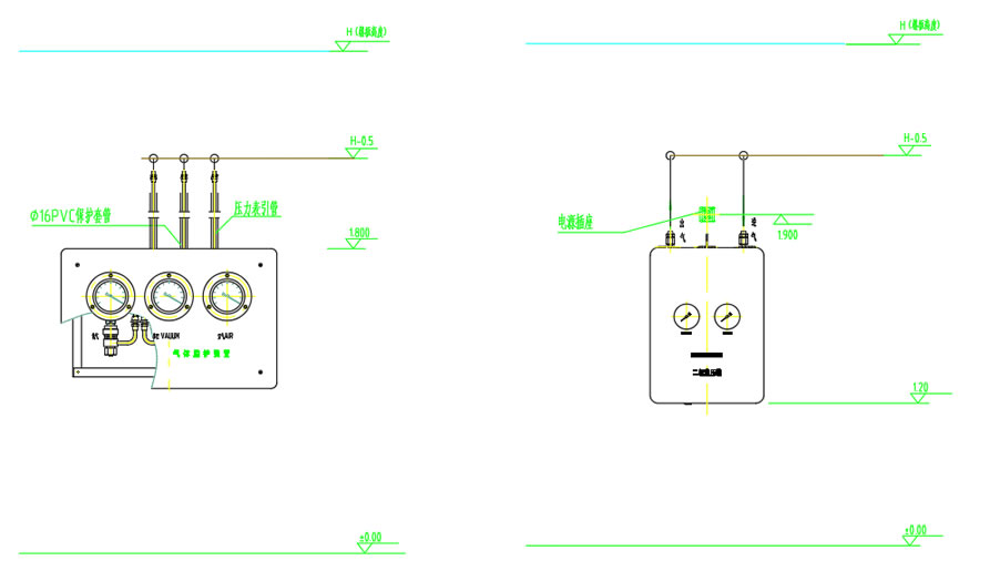 六:醫(yī)用氣體工程管道壓力報(bào)警器和二級(jí)減壓箱施工安裝圖