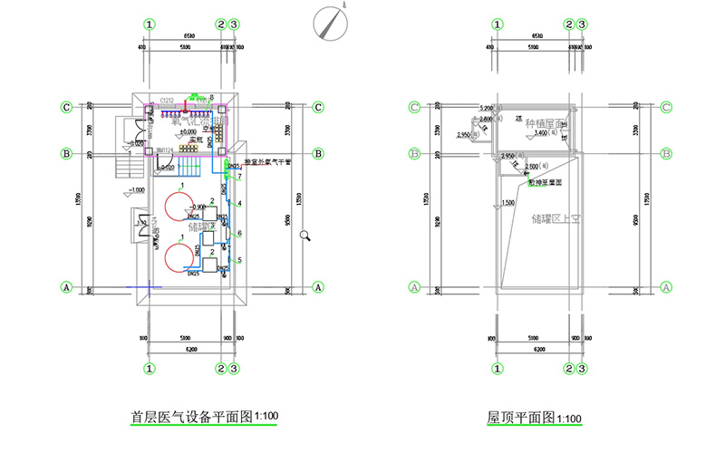 氧氣、笑氣匯流排間的電氣設(shè)備(燈、開關(guān)、排風(fēng)扇等)應(yīng)采用防爆型的;室內(nèi)、室外地面若有高差,應(yīng)有斜坡過度,以便氣瓶的運輸。